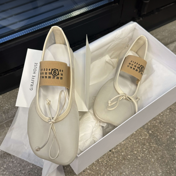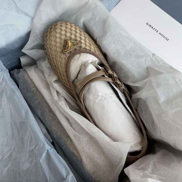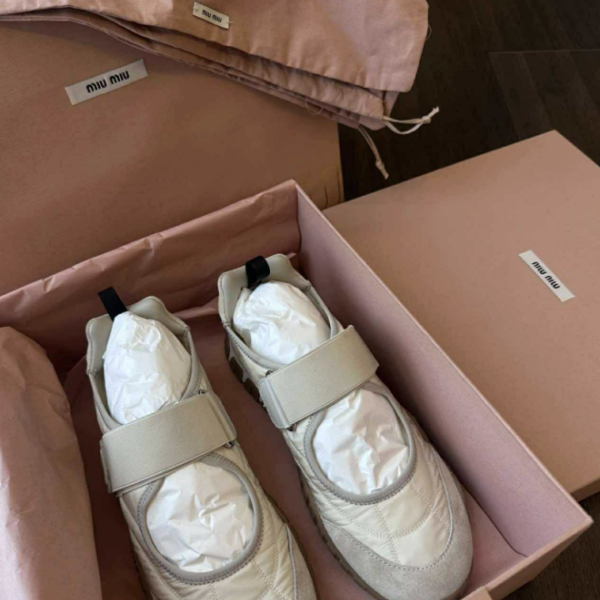 (W) Miu Miu Tyre Technical Fabric and Suede Ballerinas Ivory