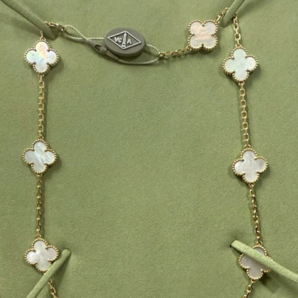 Van Cleef & Arpels Vintage Alhambra Necklace 10 Motifs 18K Yellow Gold Mother of Pearl