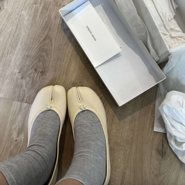 (W) Maison Margiela Tabi Ballet Flat Shoes Ivory